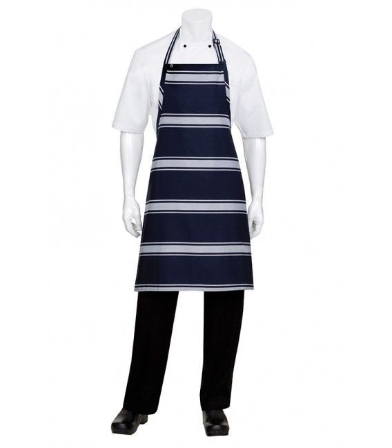 - Navy Butcher Stripe Bib Apron