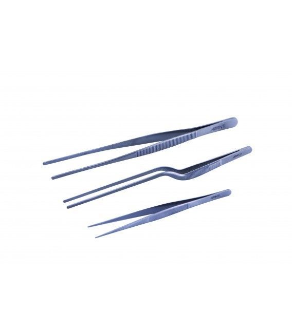 In three different styles, extra-long, offset plus delicately fine and short, you will be able to place the tiniest micro herbs or flowers, arrange your fish and other tender morsels without using clumsy fingers or large utensils. Keep a set in your apron pocket and give another set as a gift to a talented friend.