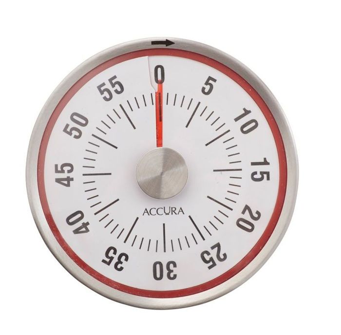 This 60 minute mechanical timer offers a loud alarm function and comes with a magnetic back for easy storage and accessibility.