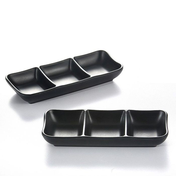 - 7.6'' Melamine Sauce Dish with 3 Compartments 19.4x8.4x2.9cm Matt Black