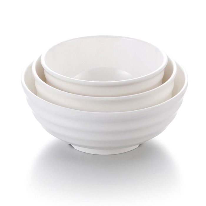 - 7'' Melamine Round Ribbed Bowl with Foot 17x8.2cm White