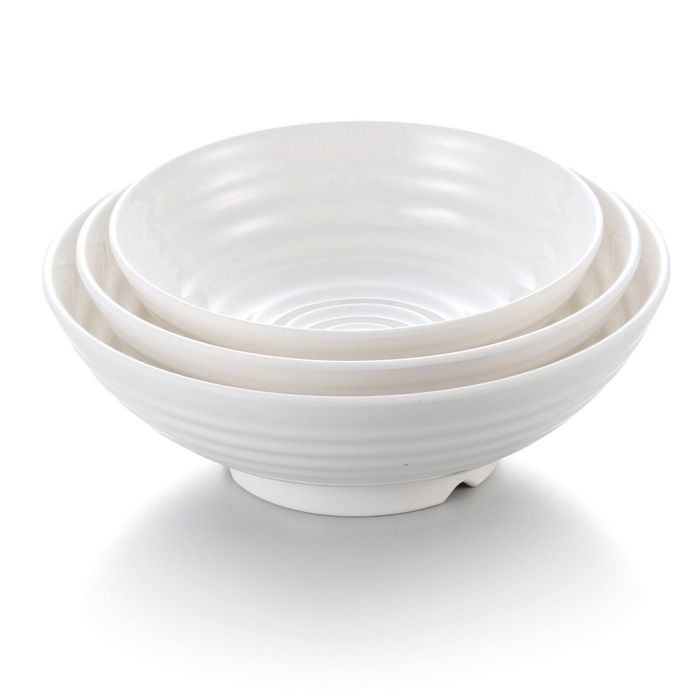 - 7.5'' Melamine Round Ribbed Bowl with Foot 19x6.5cm White