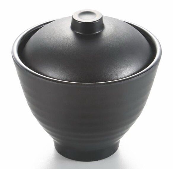 4'' Melamine Round Deep Footed Bowl with Lid 10x7.8cm Matt Black