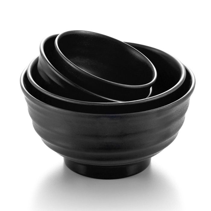 - 5'' Melamine Round Deep Ribbed Bowl with Foot 12.3x7.5cm Matt Black