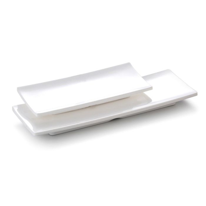 - 9.25'' Melamine Rectangle Striped Plate 23.6x10.3x2cm White