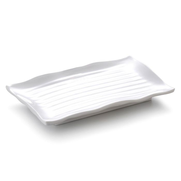 - 9.5'' Melamine Rectangle Sushi Plate with Rim 23.6x15x2.7cm White