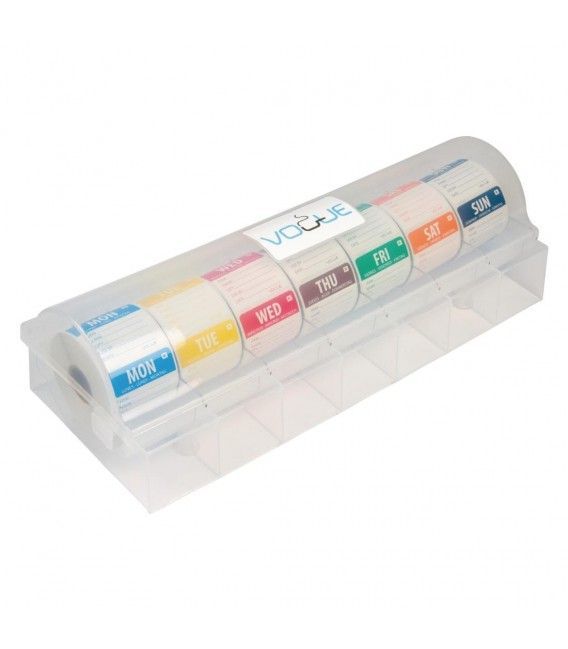 Label kits for the best value and convenient dispensing. Includes day of the week labels and plastic 2" label dispenser