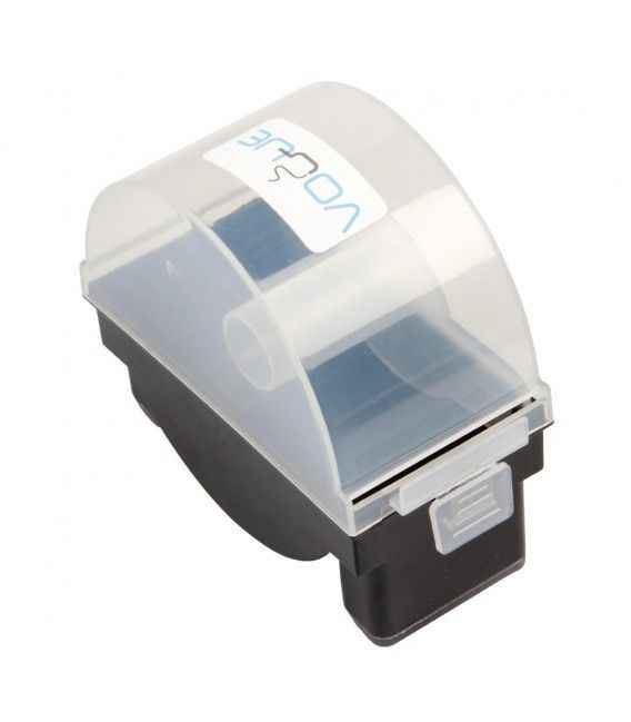 Plastic dispenser for labels. Hard plastic shell protects the label roll from kitchen mess. Light frame and easy to fix to a wall.