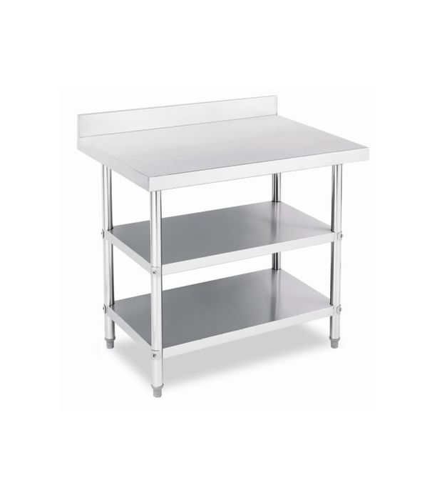 - Stainless Steel Work Table Bench with Dual Under Shelf and Splashback 1200x760x(900+100)mm