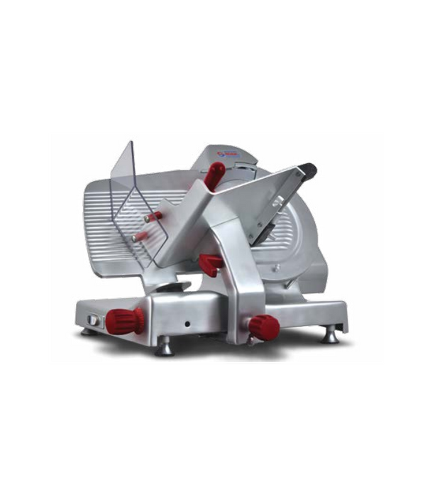 The gravity feed gear driven slicer has been designed to effortlessly handle heavy loads like cheese, bacon and meat that might cause slipping of a belt driven machine. Manufactured from anodized aluminium with clean lines, the machine features a built-in sharpening head and blade ring-guard. An ideal machine for high volume work required for large restaurants, supermarkets, delicatessen's and butcher shops.