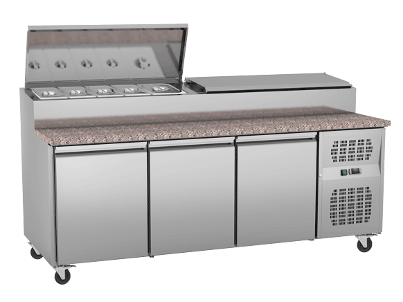 - EXQUISITE Sandwich / Pizza Preparation Chillers 470L 3 x GN 1/3 and 1 x GN 1/2 each side