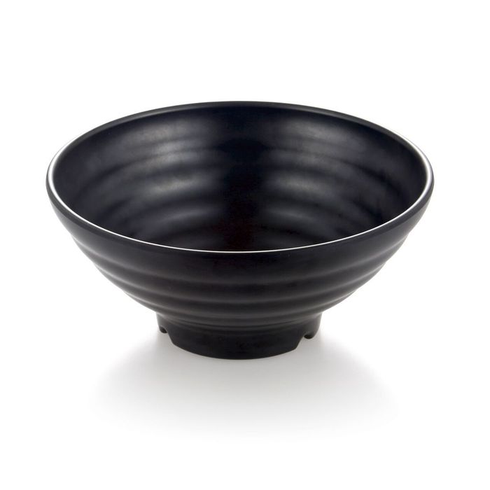 - 9" Melamine Round Ribbed Bowl 22x10cm Matte Black