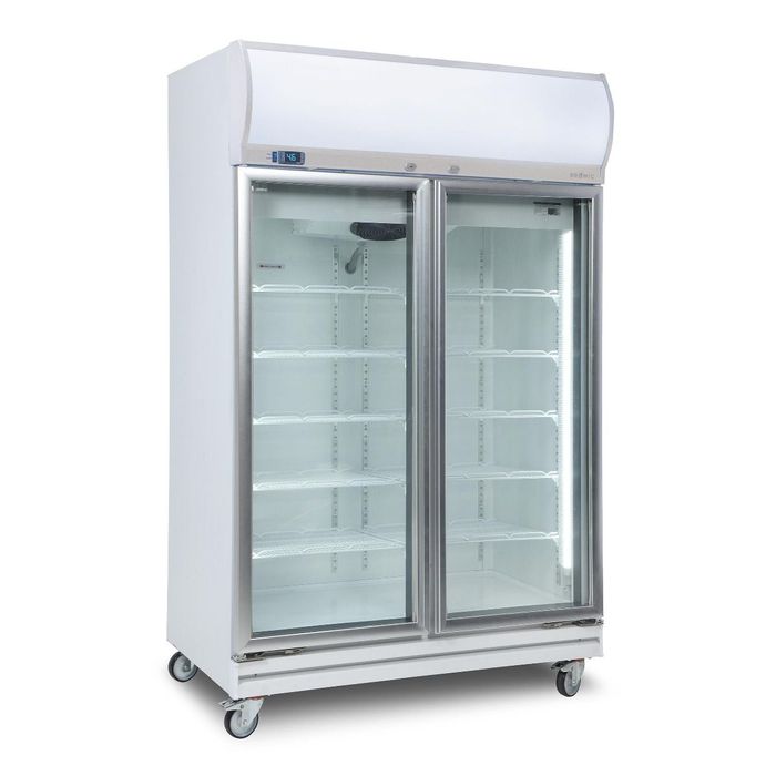 - BROMIC Upright Display Fridge 976L LED Lightbox Flat Glass 2 Door Fan Forced
